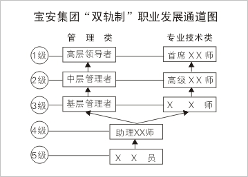 寶安集團實施任職資格管理制度,建立雙軌制職業發展通道(管理通道和專業技術通道),為員工發展提供機會。