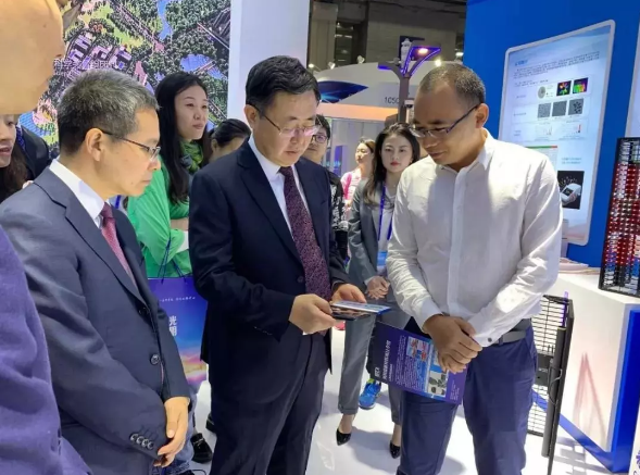 圖:貝特瑞石墨烯防腐涂料項(xiàng)目負(fù)責(zé)人為光明區(qū)區(qū)委王宏彬書(shū)記講解展出的石墨烯項(xiàng)目。